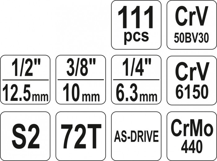 ZESTAW NARZĘDZIOWY 1/4" 3/8" 1/2" 111CZ.