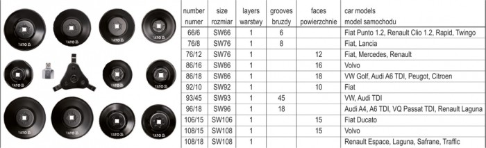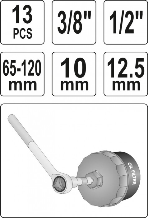 Klucze nasadowe do filtrów oleju kpl. 13 szt.