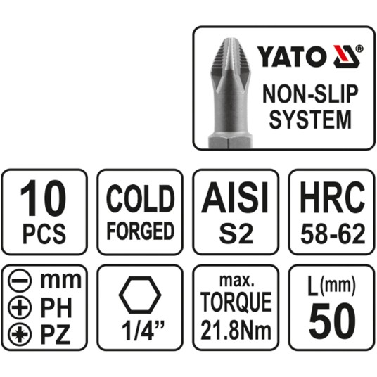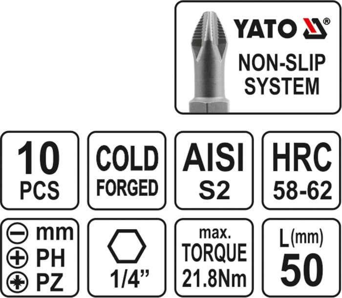 ZESTAW BITÓW DO WKRĘTARKI 50MM 10SZT.
