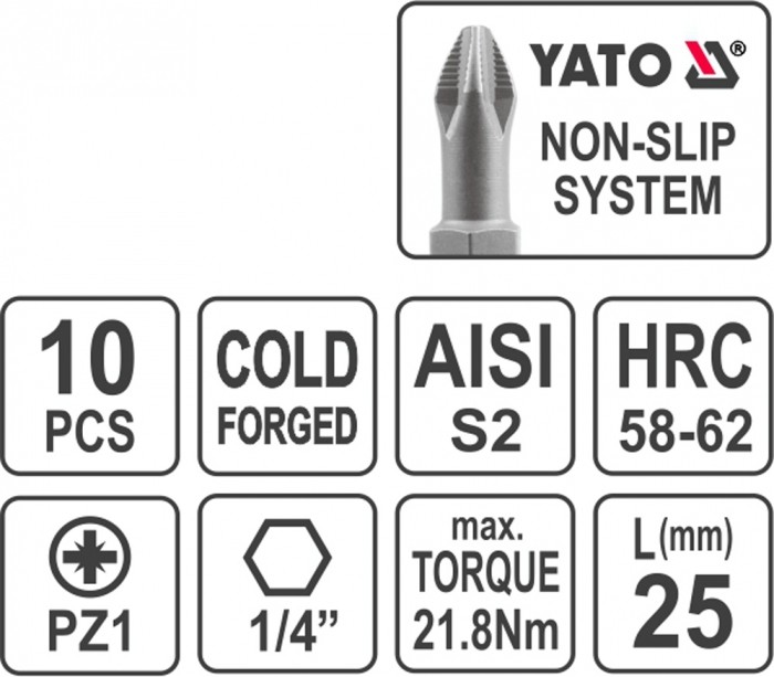 BITY DO WKRĘTARKI 10SZT. PZ1x25 S2
