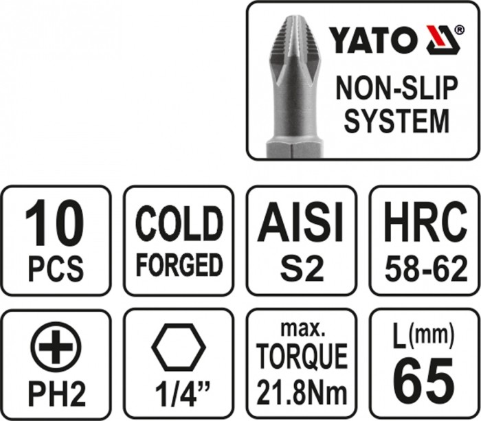 BITY OBUSTR.DO WKRĘTARKI 10SZT.PH2x65 -zdjęcie numer 2