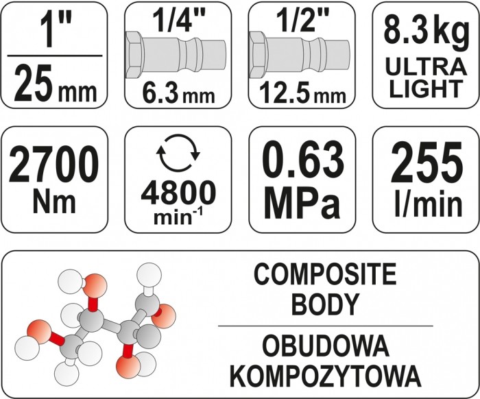 KLUCZ UDAROWY 1" KOMPOZYTOWY 2700Nm
