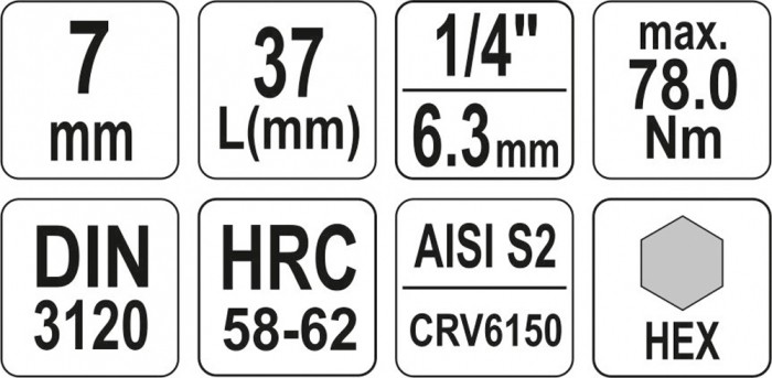KLUCZ TRZPIENIOWY HEX 1/4" 7MM L37MM