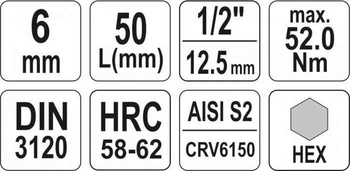 KLUCZ TRZPIENIOWY HEX 1/2" 6MM L55MM