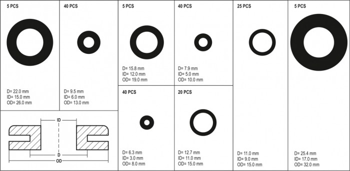 ZESTAW PRZELOTEK GUMOWYCH 180SZT. MIX -zdjęcie numer 3