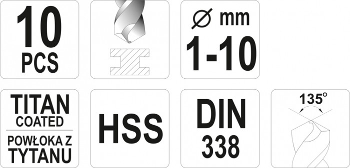 ZESTAW WIERTEŁ DO MET.HSS-TiN 10SZT 1-10 -zdjęcie numer 1