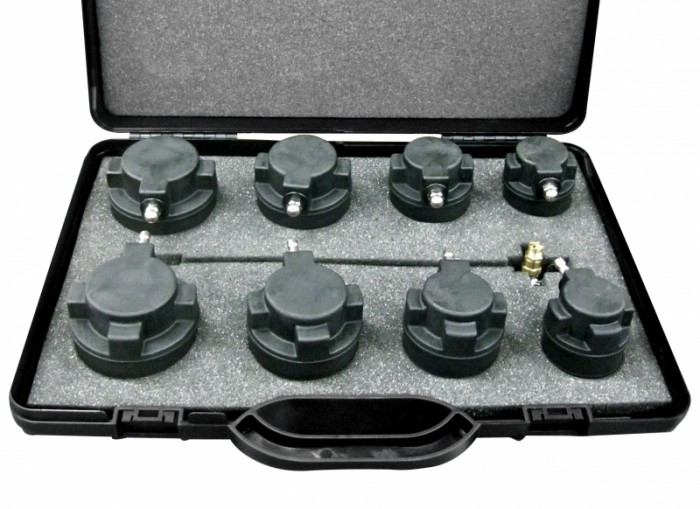 Adaptery umożliwiają podłączenie sprężonego powietrza do układu dolotowego w celu wykrycia i zlokalizowania ewentualnych nieszczelności. Zestaw pozwala na szybkie sprawdzenie szczelności turbosprężarki, intercoolera i przewodów ciśnieniowych.