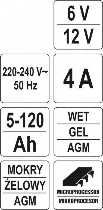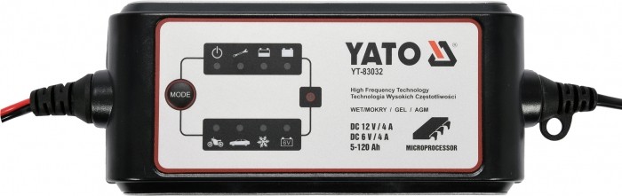Profesjonalny prostownik YT-83032 do ładowania akumulatorów 6V / 12V i pojemności do 120Ah w motocyklach, traktorach, samochodach osobowych i dostawczych oraz łodziach motorowych.