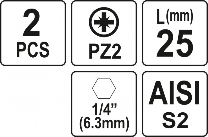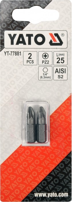 Precyzyjne bity do dokręcania i wykręcania wkrętów, lub śrub marki YATO YT-77881. Profil frezowany, wykończony piaskowaniem, zabezpieczony powłoką antykorozyjną. Odkuwane na zimno ze stali AISI S2.