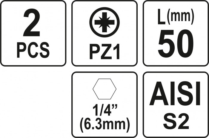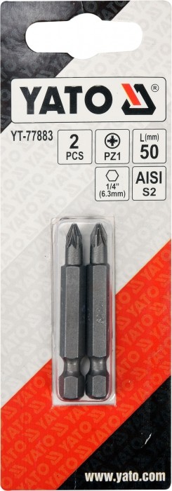 Precyzyjne bity do dokręcania i wykręcania wkrętów, lub śrub marki YATO YT-77883. Profil frezowany, wykończony piaskowaniem, zabezpieczony powłoką antykorozyjną. Odkuwane na zimno ze stali AISI S2.