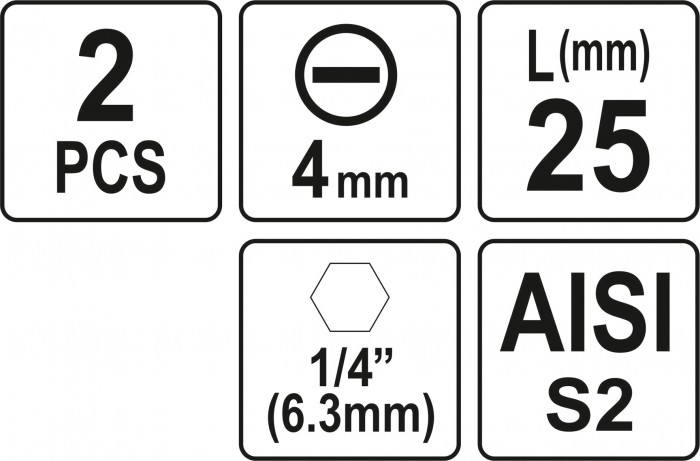 BITY 1/4"X25 MM, 4MM 2 SZT