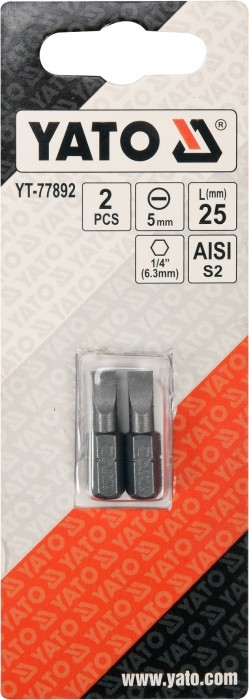 Precyzyjne bity do dokręcania i wykręcania wkrętów, lub śrub marki YATO YT-77892. Profil frezowany, wykończony piaskowaniem, zabezpieczony powłoką antykorozyjną. Odkuwane na zimno ze stali AISI S2.