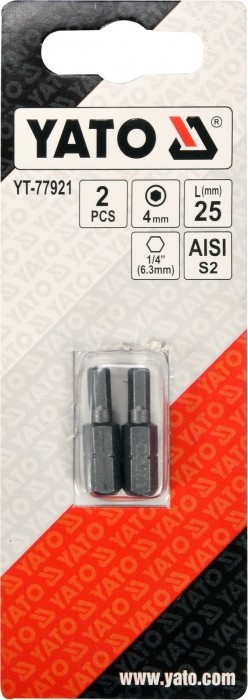 Precyzyjne bity do dokręcania i wykręcania wkrętów, lub śrub marki YATO YT-77921. Profil frezowany, wykończony piaskowaniem, zabezpieczony powłoką antykorozyjną. Odkuwane na zimno ze stali AISI S2.