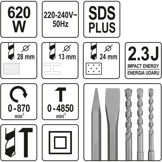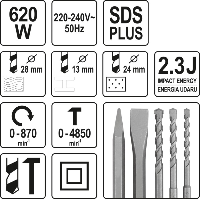 MŁOTOWIERTARKA Z METALOWĄ OBUDOWĄ Y