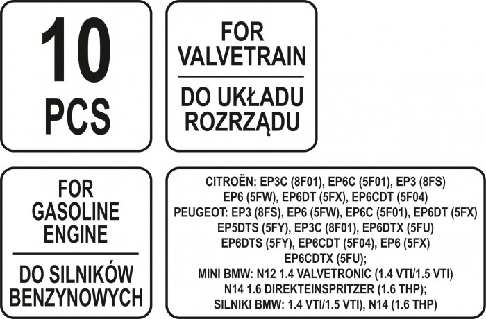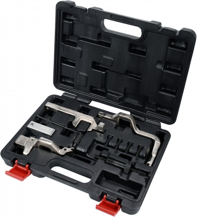 Profesjonalny zestaw do obsługi układu rozrządu silników benzynowych samochodów marek Citroën, Peugeot, Mini i BMW.