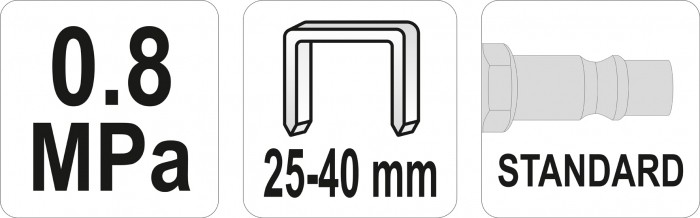 Profesjonalny zszywacz pneumatyczny do prac montażowych i wykończeniowych. Wbija zszywki o rozstawie 5,7 mm i długościach od 25-40 mm. Posiada obrotową dyszę wylotu powietrza, przyłącze 1/4BSP, nosek wyposażony w bezpiecznik chroniący przed przypadkową aplikacją zszywki. Korpus wykonany z ciśnieniowo odlewanego aluminium .