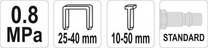 Profesjonalny zszywacz pneumatyczny do prac montażowych i wykończeniowych. Dwufunkcyjne urządzenie - zszywacz i sztyfciarka - wbija zszywki o rozstawie 5,5 mm i długościach od 25-40 mm oraz gwoździe płaskie o długościach 05 10-50 mm. Posiada obrotową dyszę wylotu powietrza, przyłącze 1/4BSP, nosek wyposażony w bezpiecznik chroniący przed przypadkową aplikacją zszywki. Korpus wykonany z ciśnieniowo odlewanego aluminium.