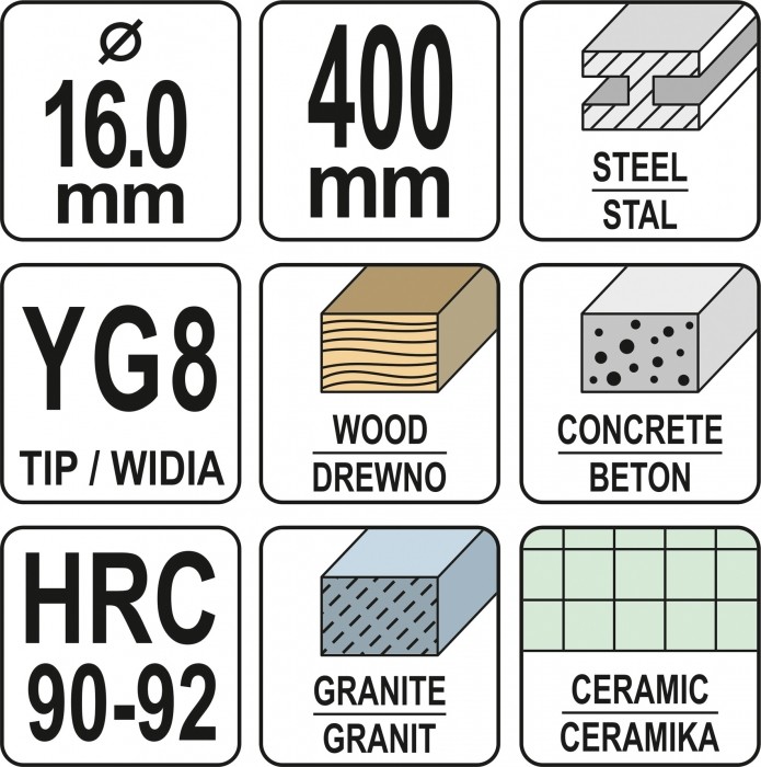 WIERTŁO UNIWERSALNE 16MM X 400MM