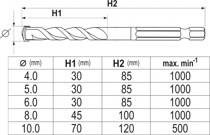 ZESTAW WIERTEŁ UNIWERSA 5SZT. 4-10MM HEX -zdjęcie numer 2