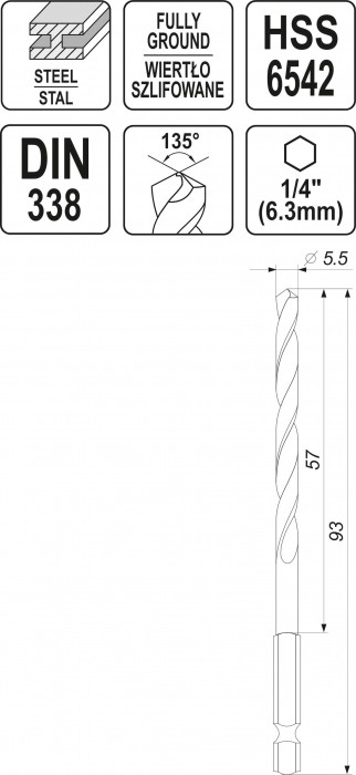 WIERTŁO DO METALU HSS 6542 5,5MM HEX