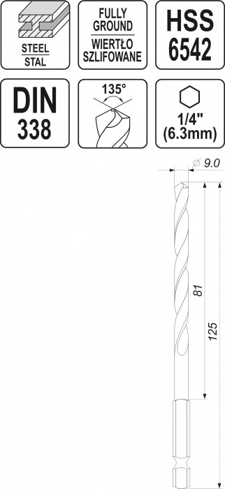 WIERTŁO DO METALU HSS 6542 9,0MM HEX -zdjęcie numer 1