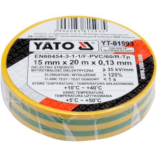 Taśma elektroizolacyjna PVC o wymiarze 15 mm x 20 m x 0,13 mm.
