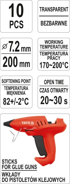 KLEJ TERMOTOPLIWY 7,2x200MM 10SZT TRANSP -zdjęcie numer 3