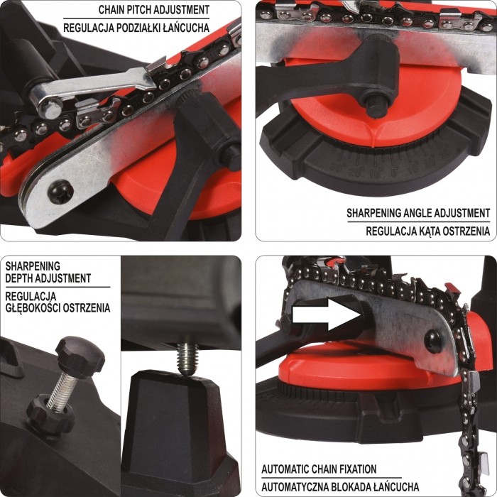 Elektryczna ostrzałka zapewnia precyzyjne i wygodne ostrzenie łańcuchów tnących pilarek.