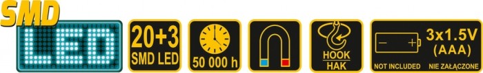 LAMPA RĘCZNA OBROTOWA 20+3 LED 3xAAA