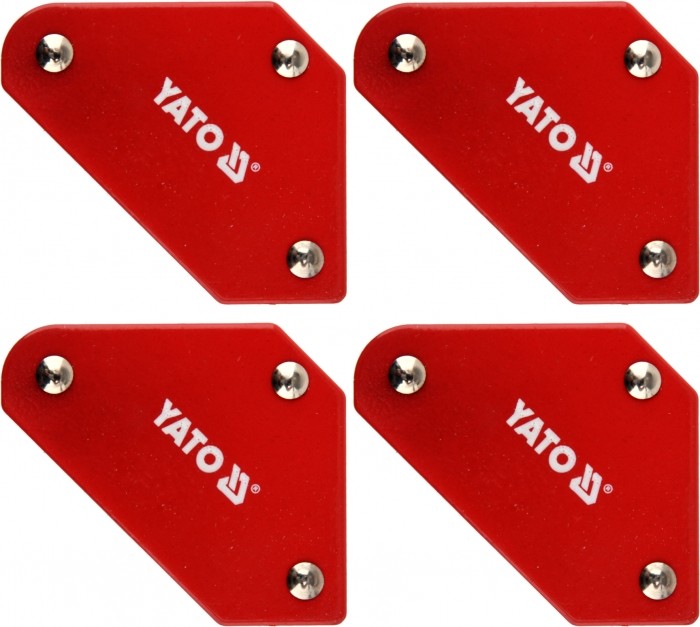 Zestaw 4 mini kątowników spawalniczych magnetycznychYT-08677wykonanych z blachy stalowej oraz silnych magnesów ferrytowych. Powierzchnia lakierowana proszkowo. Przeznaczone do czasowego łączenia metalowych elementów podczas spawania, nawiercania, lakierowania.