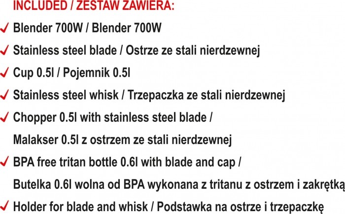 BLENDER RĘCZNY WIELOFUNKCYJNY 4W1 700W