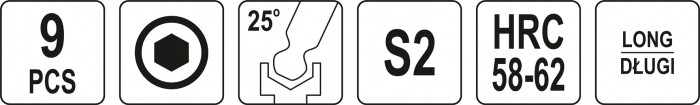 Zestaw kolorowych kluczy imbusowych z końcówką kulistą marki YATO YT-05632. Zestaw zapakowany w praktyczną i poręczną zawieszkę z tworzywa sztucznego, kolorowe oznakowanie kluczy, ułatwia wyszukanie odpowiedniego rozmiaru. Trzpień sześciokątny z główką kulistą umożliwia bezproblemowe przykręcanie pod kątem do 25°. Wykonane z wysokiej jakości stali S2, która charakteryzującej się wytrzymałością oraz sprężystością. Imbusy posiadają twardość 58-62 HRC. Klucze: 1.5mm: a:14.5mm,b:78.5mm-szary 2.0mm: a:16mm,b:83mm-różowy 2.5mm: a:17.5mm,b:90.5mm-zielony 3.0mm: a:21mm,b:99mm-turkusowy 4.0mm: a:23mm,b:110mm-żółłty 5.0mm: a:27mm,b:122mm-pomarańczowy 6.0mm: a:30mm,b:138mm-czerwony 8.0mm: a:33mm,b:152mm-fioletowy 10mm: a:38mm,b:166mm- niebieski