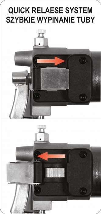 dzięki systemowi szybkiego wypinania nie ma konieczności dokręcania pojeminika ze smarem