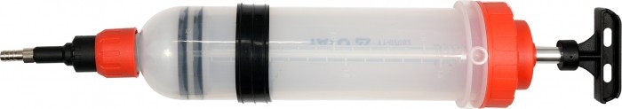 Strzykawka do odsysania płynów w pojazdach napędzanych benzyną lub olejem napędowym. Wykonana z wysokiej jakości materiałów, co powoduje, że jest szczelna i zapobiega rozlaniu paliwa. Przezroczysty korpus strzykawki umożliwia kontrolę wysysanych płynów.