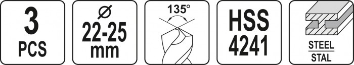 ZESTAW WIERTEŁ DO METALU 3SZT 22-25MM -zdjęcie numer 3