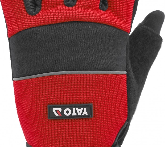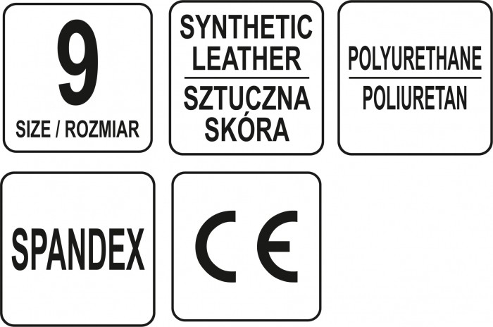 Wykonane ze skóry syntetycznej, dwuwarstwowej tkaniny z dodatkiem spandexu oraz z neoprenu. Skóra syntetyczna gwarantuje wytrzymałość i dobre dopasowanie do dłoni. Poduszki pod dłonią uchronią przed powstawaniem odcisków. Neopren na kostkach rozciąga się i pracuje wraz z zgięciami dłoni. Na kciuku tkanina typu frotte do ocierania potu. Dwuwarstwowa tkanina w części wierzchniej z wytrzymałego nylonu z dodatkiem tworzywa nadającego mu elastyczność to nie tylko dobra ochrona przed zagrożeniami mechanicznymi, ale także wysoki komfort pracy.