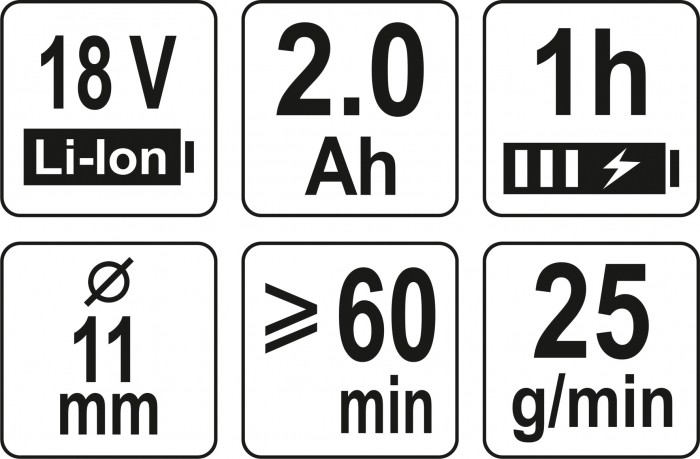 czas pracy naładowanego urządzenia: ponad 1 h dla baterii 2 Ah