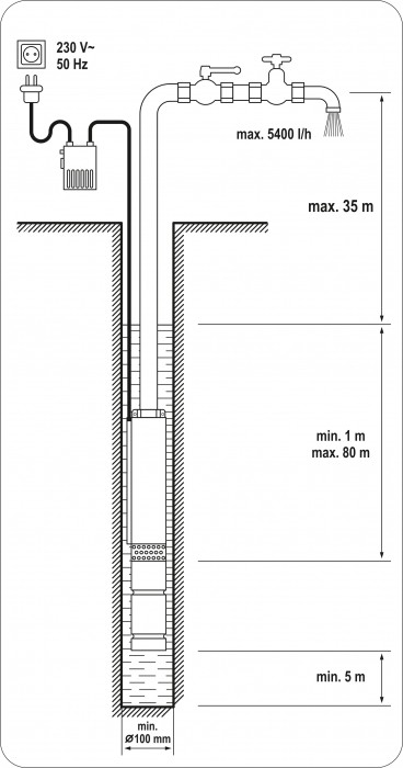 Pompa głębinowa 370W Przeznaczona do wypompowywania wody czystej ze studni głębinowych.