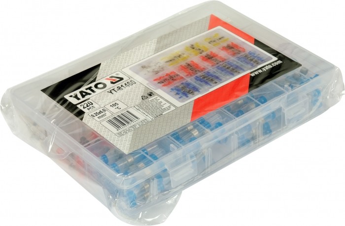 Koszulki termokurczliwe z cyną marki YATO wykonane są z polietylenu (PE), odpowiedniej ilości spoiwa lutowniczego oraz z pierścieni z kleju na gorąco. Przewag koszulek z PE nad koszulkami z PVC jest wiele, a najważniejsze z nich to: