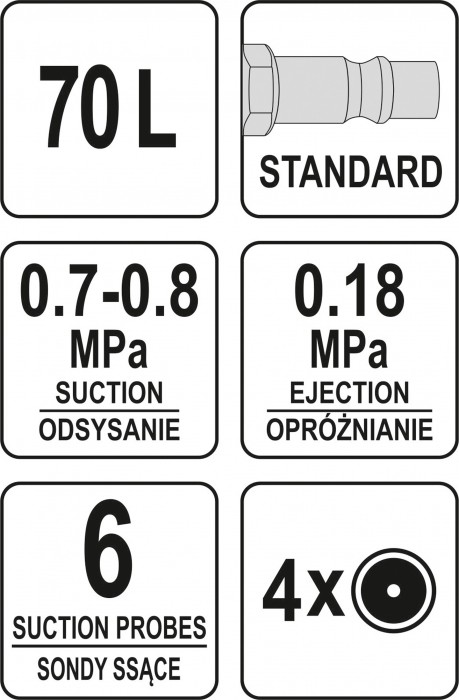 ciśnienie odsysania: 0.7-0.8 MPa
