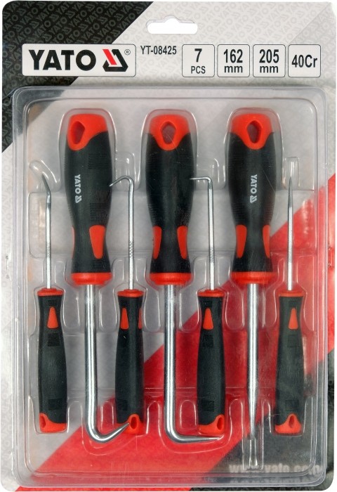 Zestaw haczyków z rękojeścią posiada hartowane i chromowane groty wykonane ze stali 40Cr. Rękojeść wykonana jest z dwukomponentowego tworzywa ułatwiającego pewny uchwyt. Zestaw wykorzystywany jest do prac precyzyjnych takich jak: