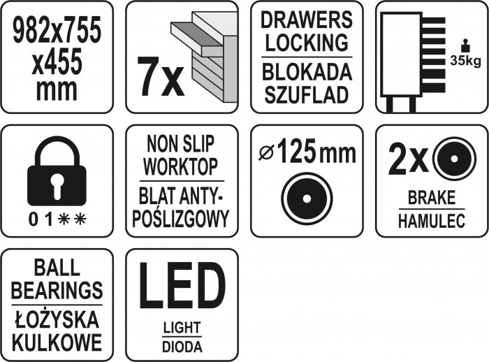 SZAFKA SERWISOWA 7 SZUFLAD LED LOGO