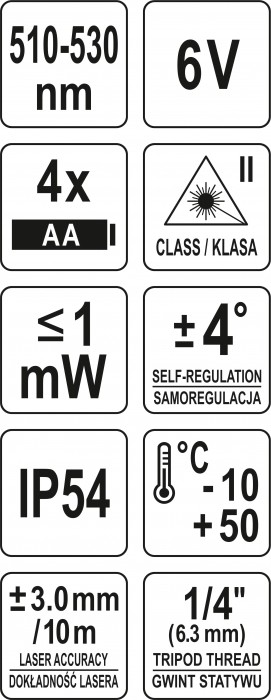 Laser emituje dobrze widoczne linie w kolorze zielonym.