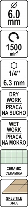 DIAMENTOWE WIERTŁO DO GRESU 6MM HEX