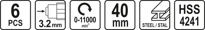 FREZY HSS DO MINISZLIFIEREK, 6 SZT 3,2MM