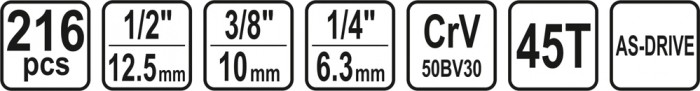 ZESTAW NARZĘDZIOWY 1/2" 216CZ. XXL