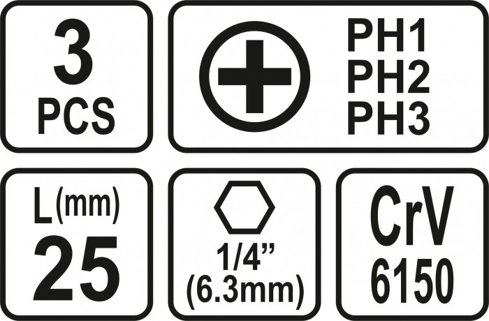 BITY 1/4"X25 MM PH1, PH2, PH3 3 SZT