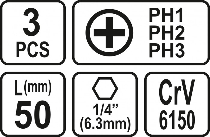 BITY 1/4"X50 MM PH1, PH2, PH3 3 SZT