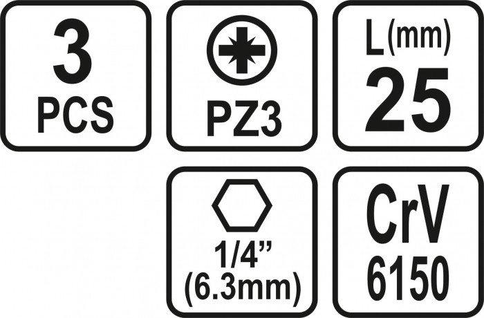 BITY 1/4"X25 MM PZ3 3 SZT -zdjęcie numer 1