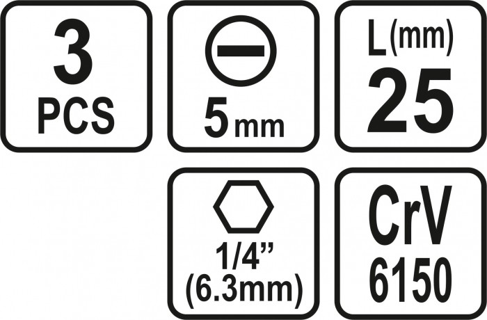 BITY 1/4"X25 MM, 5MM 3 SZT